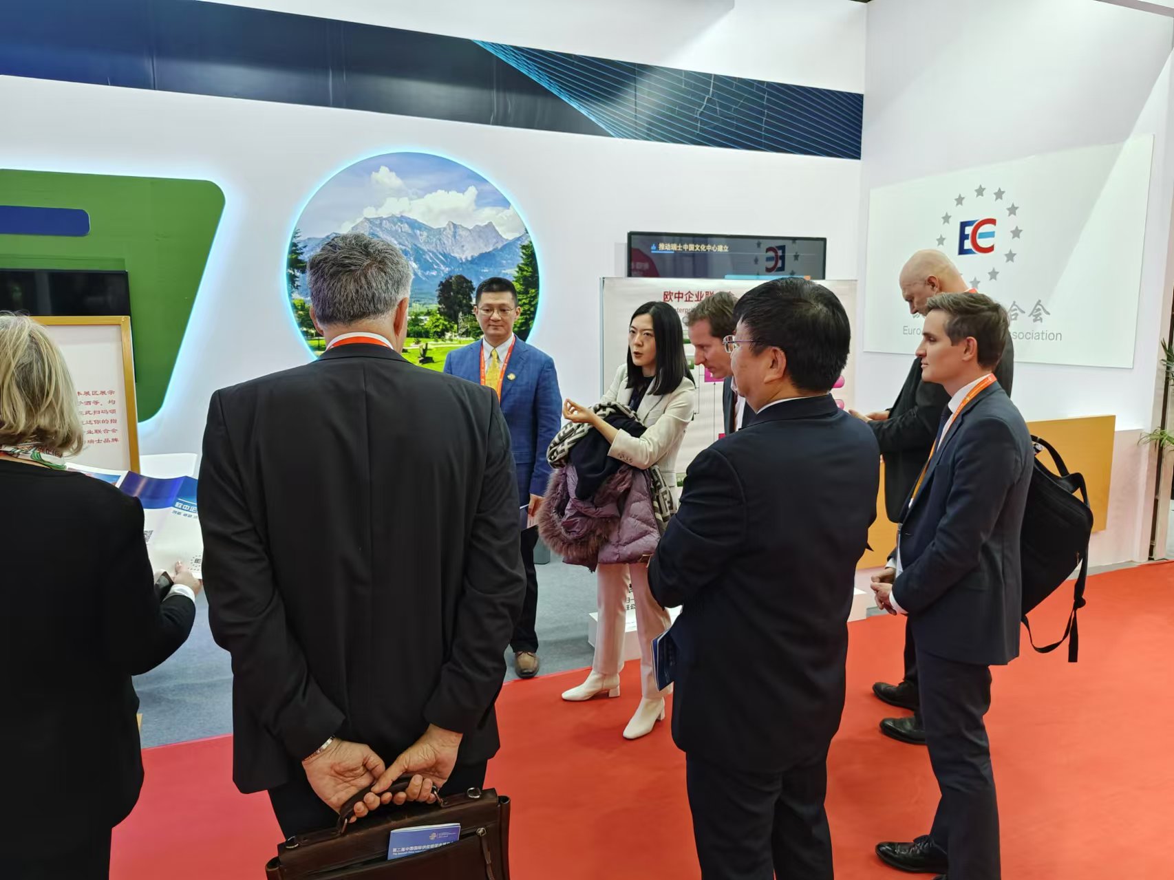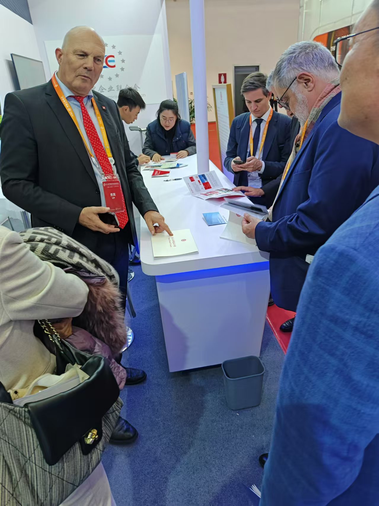 2024年11月26日上午,鏈博會(huì)開幕會(huì)結(jié)束,瑞士議員代表團(tuán)全部到訪歐中企業(yè)聯(lián)合會(huì)在鏈博會(huì)的展廳。