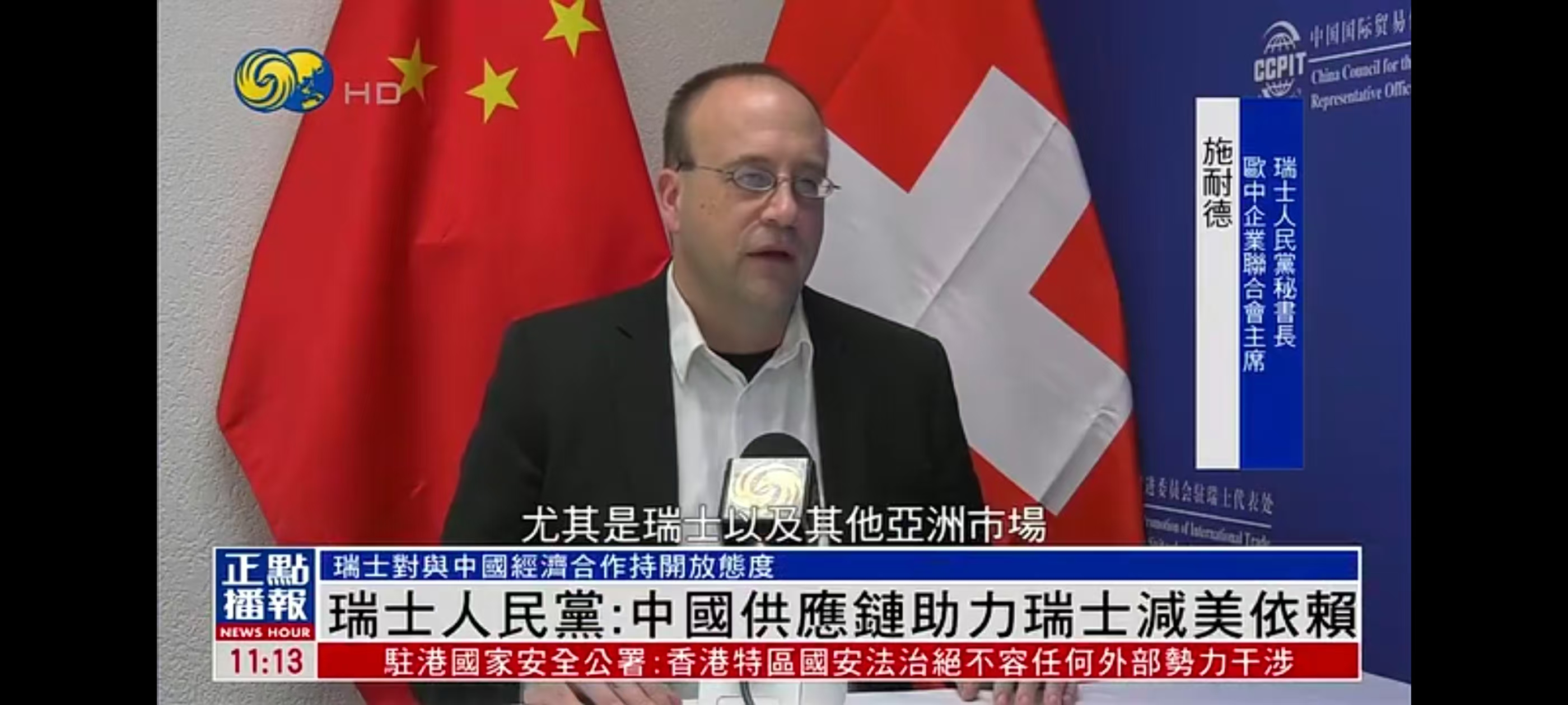 歐中企業(yè)聯(lián)合會(huì)會(huì)長施耐德在蘇黎世接受了鳳凰衛(wèi)視的采訪